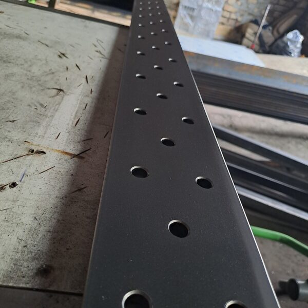 Industriālās ēkas iekšpusē izbūvēto ūdens noteču pārsedzes. Produkts ir 8mm biezumā, gruntēts un krāsots pulverkrāsā, lai nodrošinātu augstāku noturību pret mehānisko slodzi.